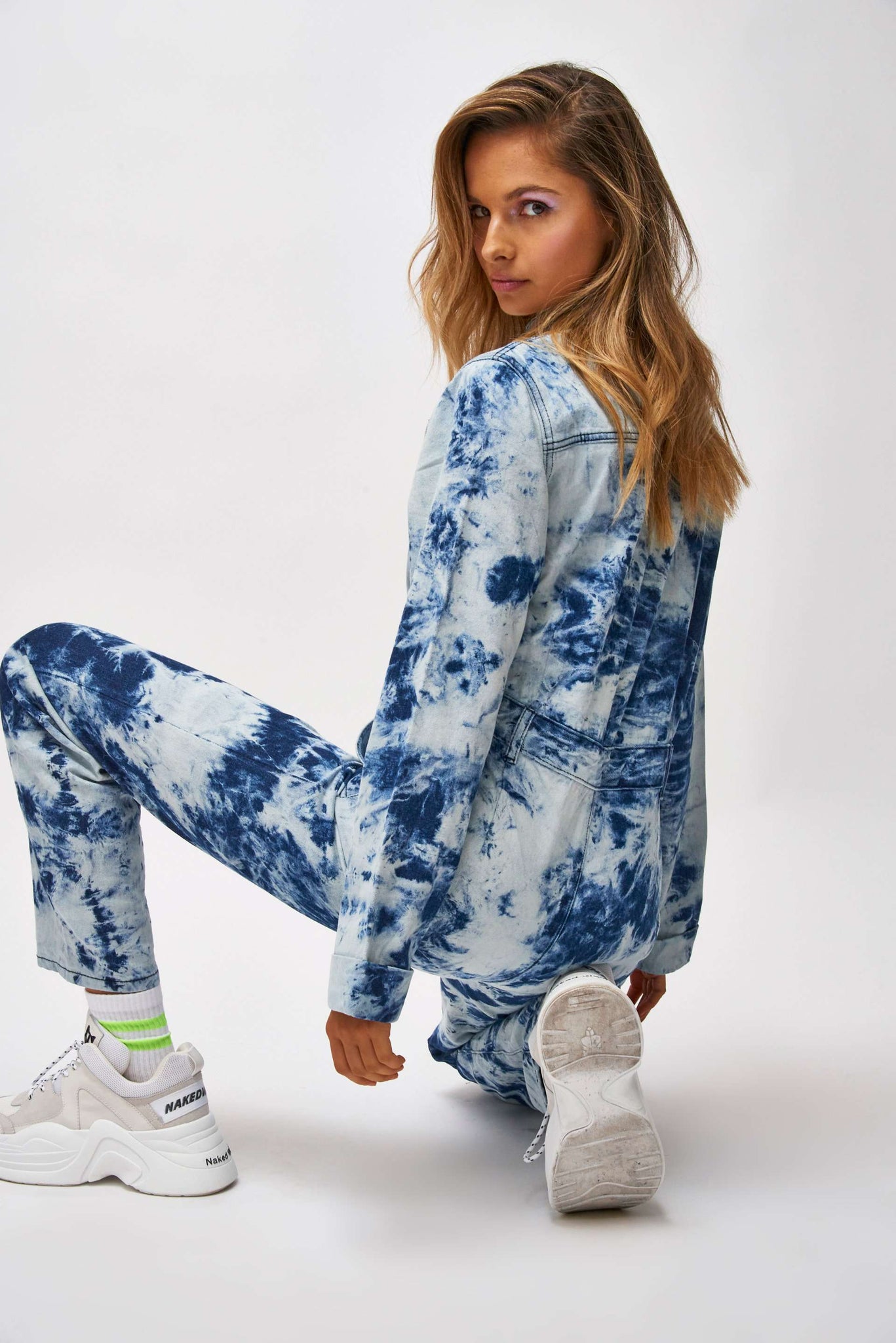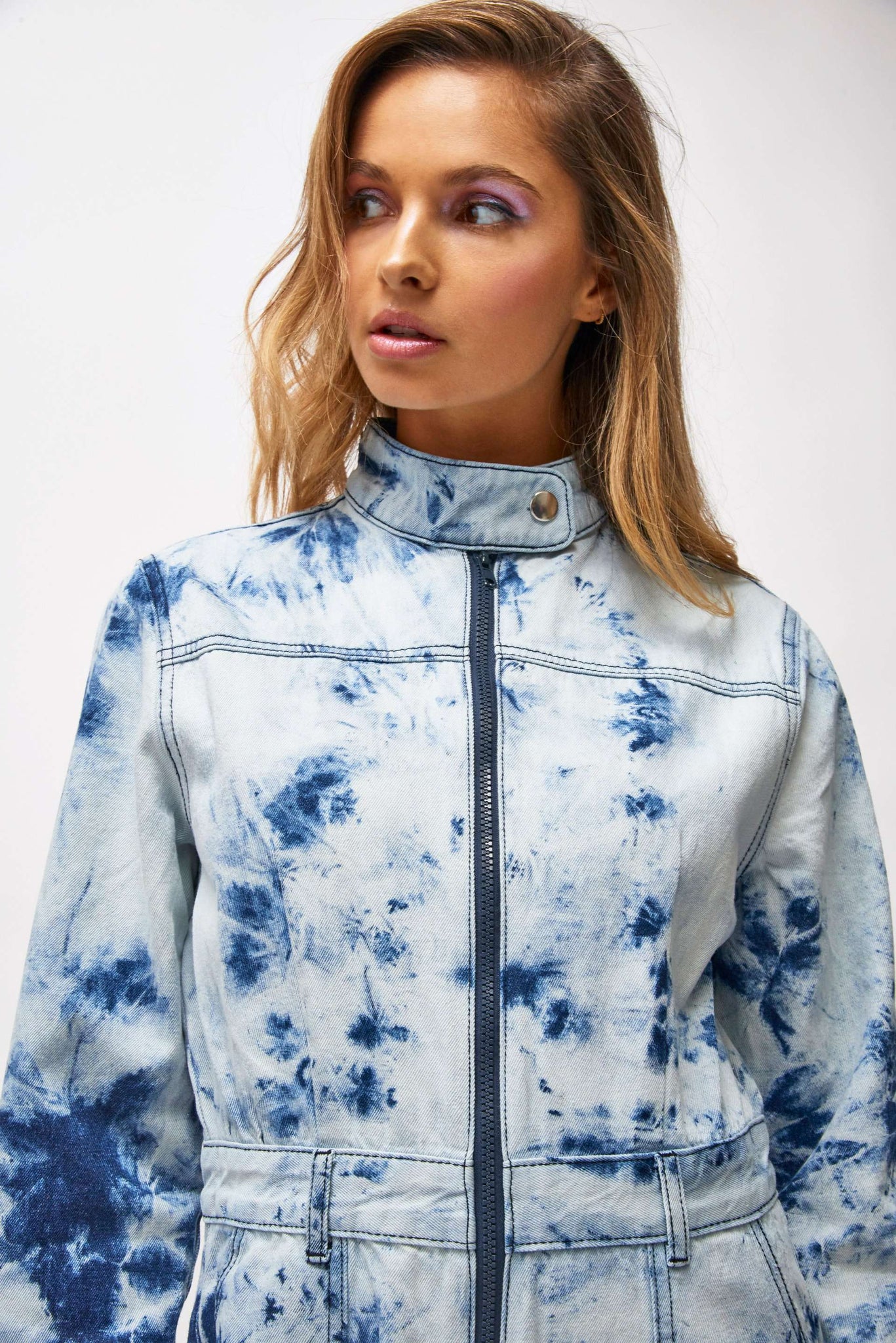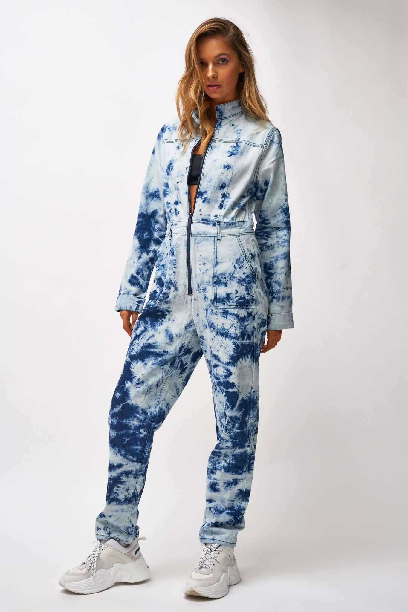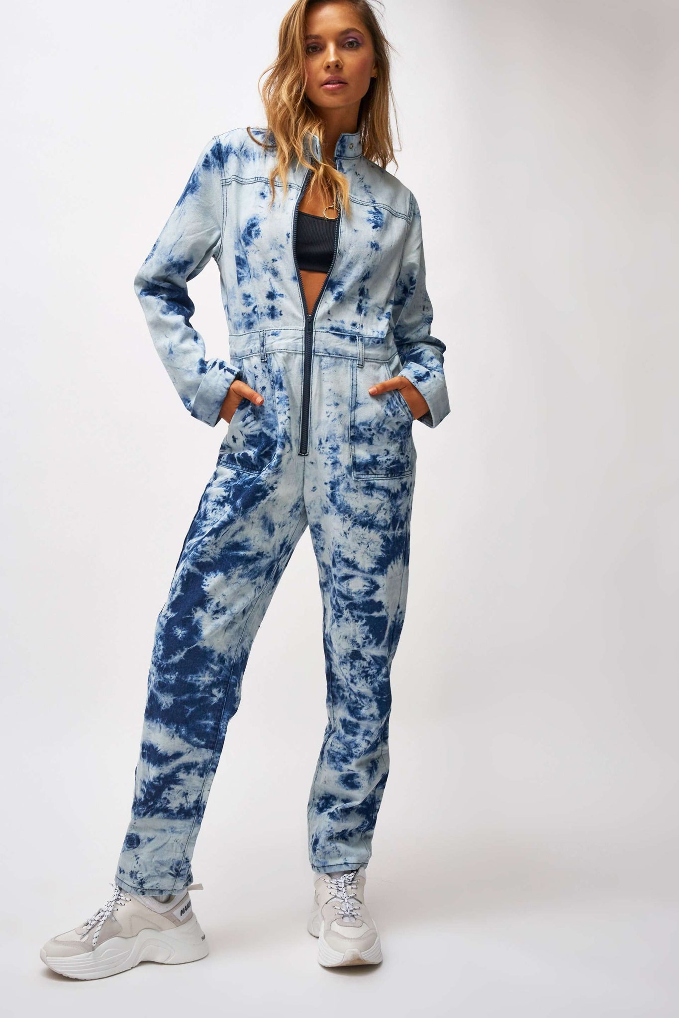 Kick back in style rocking our acid wash blue denim boilersuit!