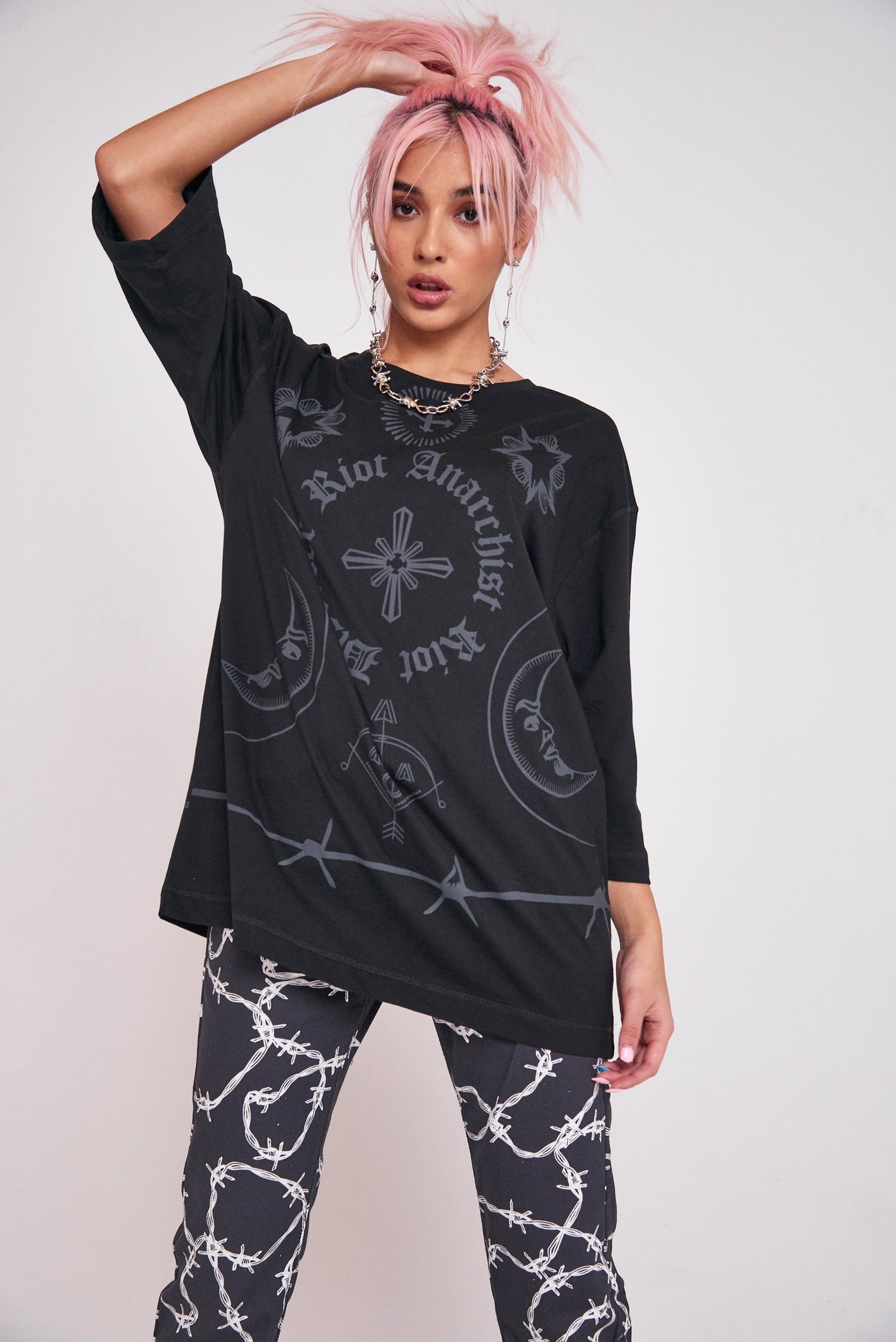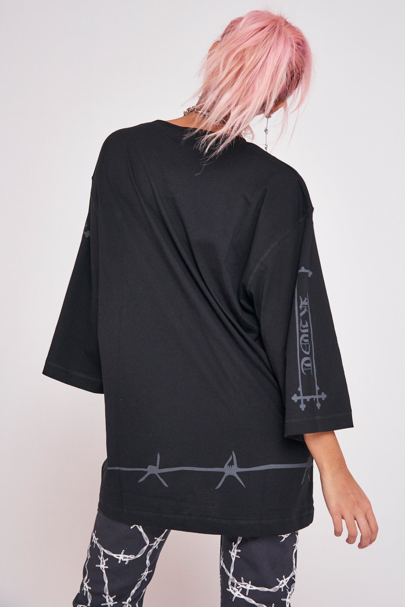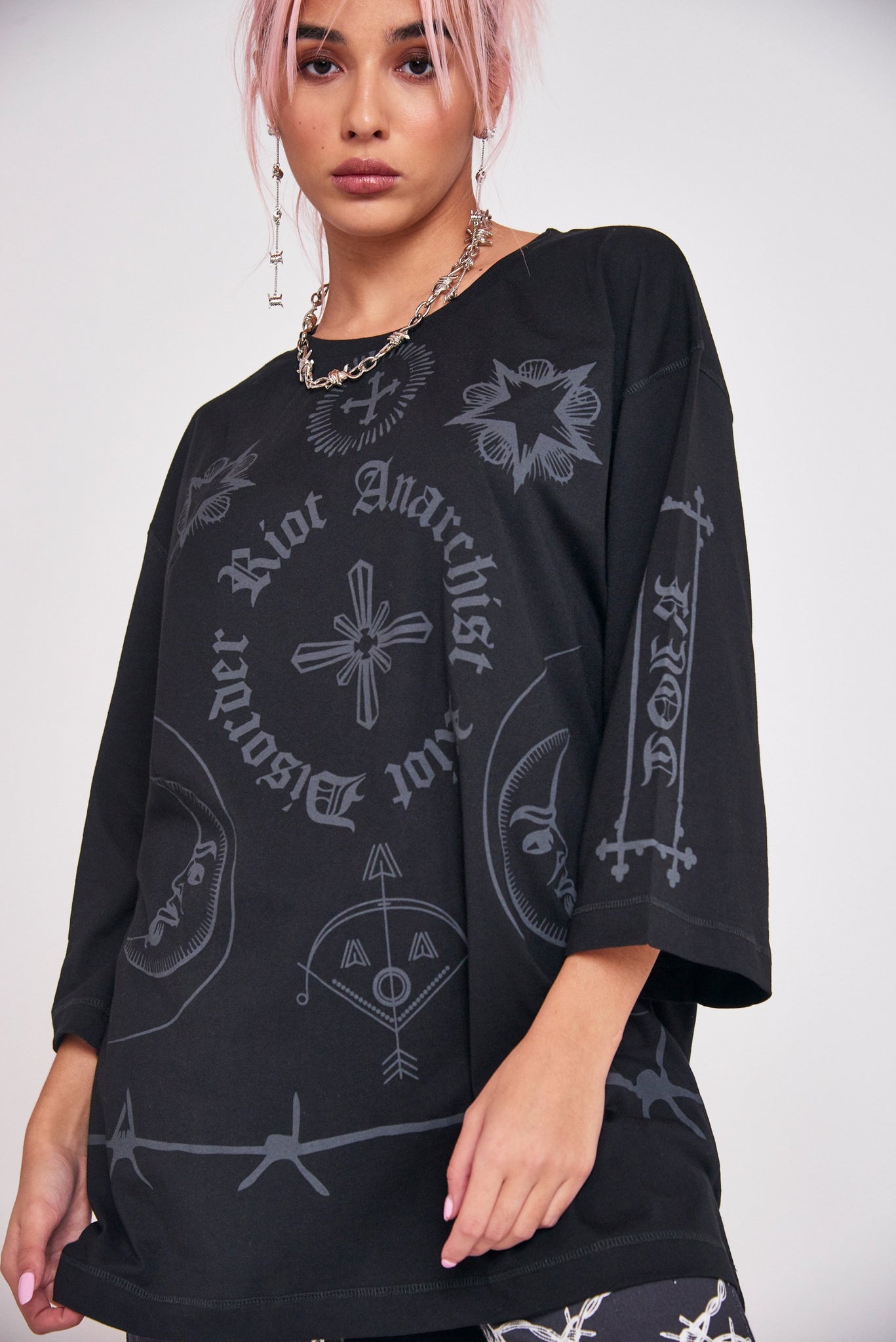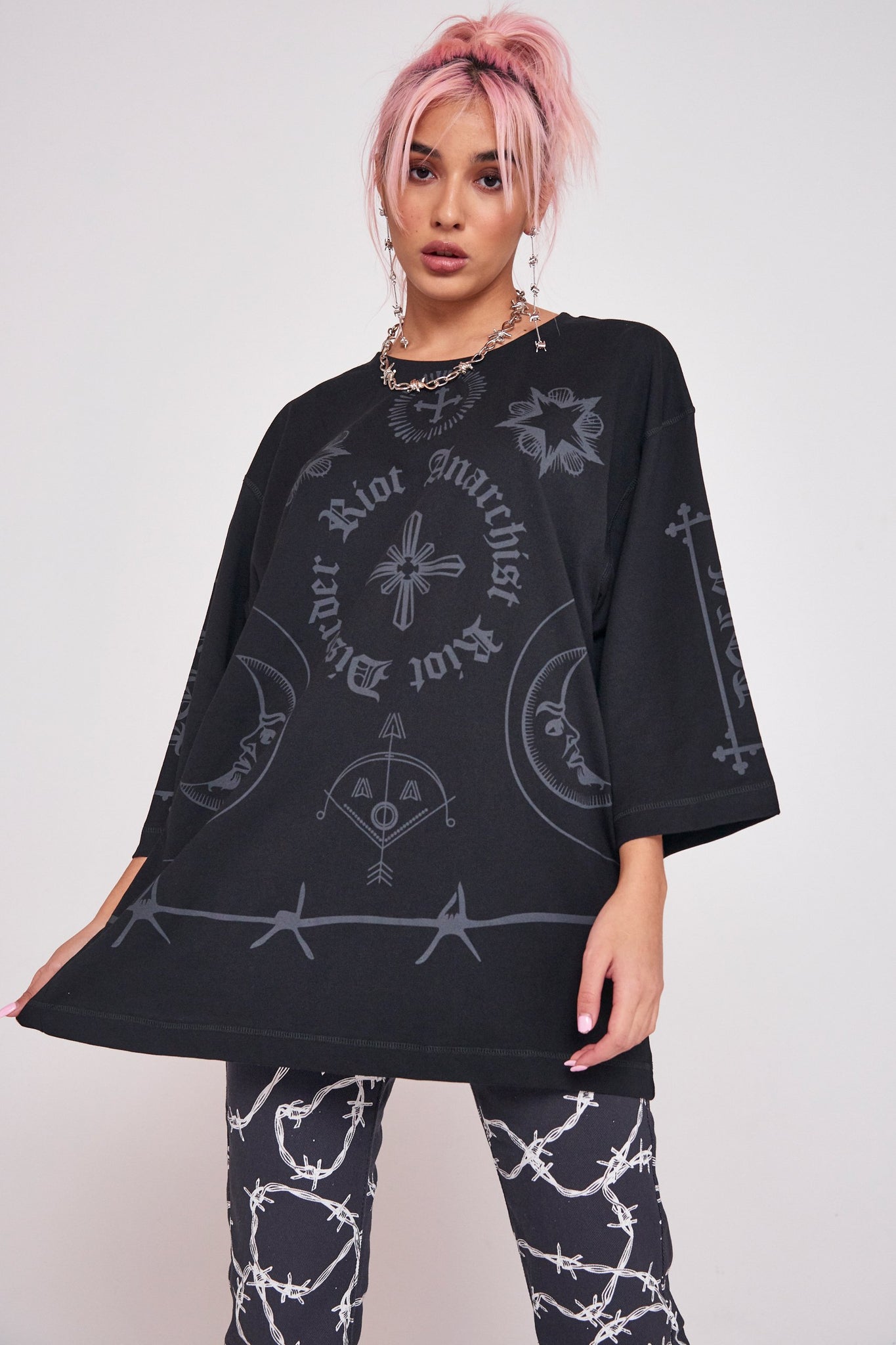 %text-1-start%Upgrade your wardrobe this season rocking our Black Friday exclusive Black Gothic Print Oversized T-shirt!
