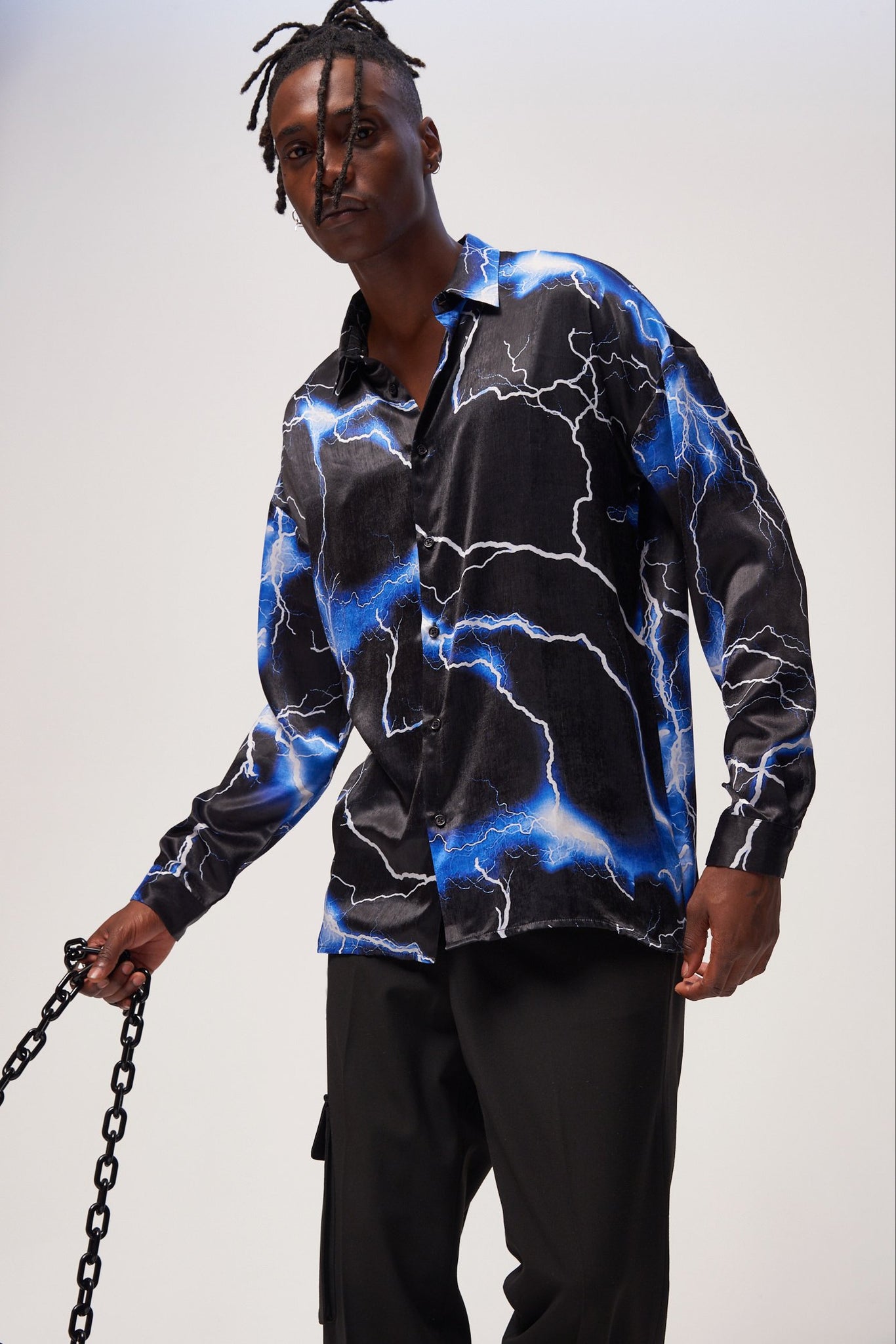 %text-1-start% Blue Lightning Print Long Sleeve Shirt