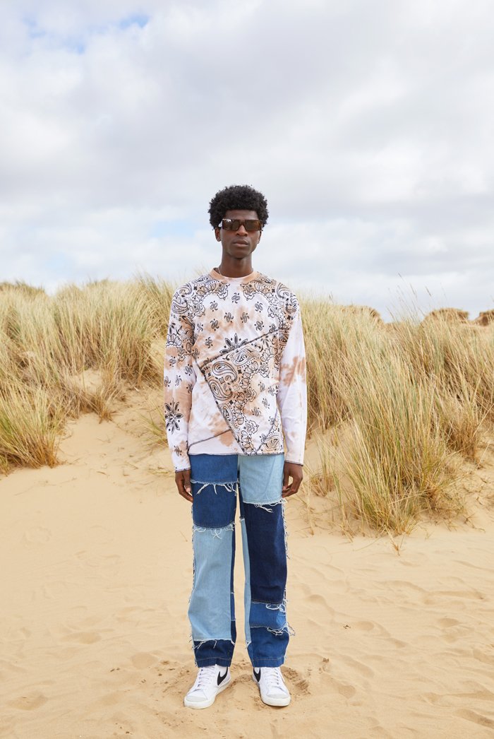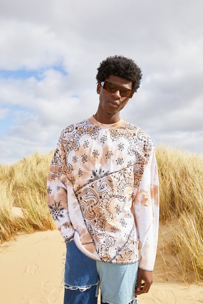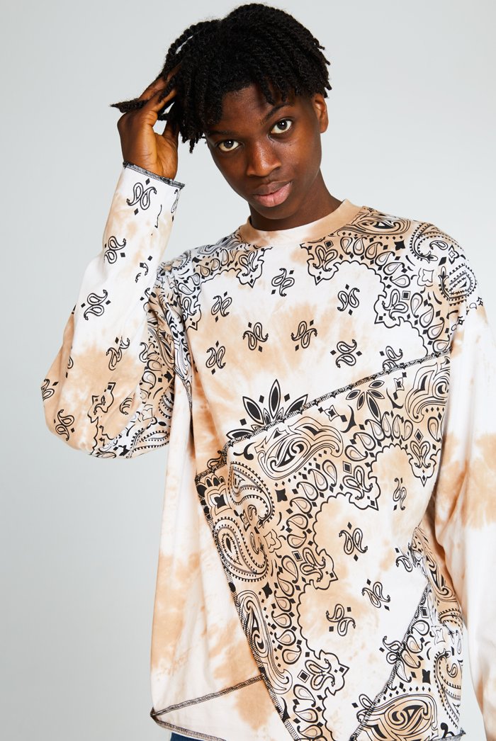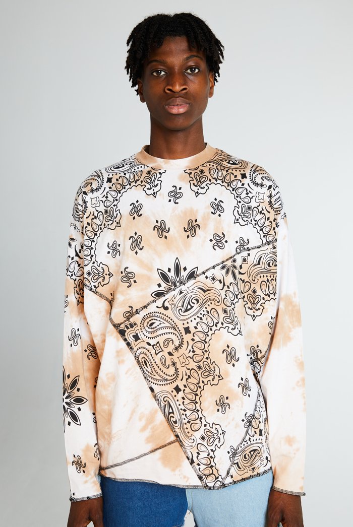 %text-1-start%Cut & Sew Tie Dye Paisley Print Long Sleeve Top