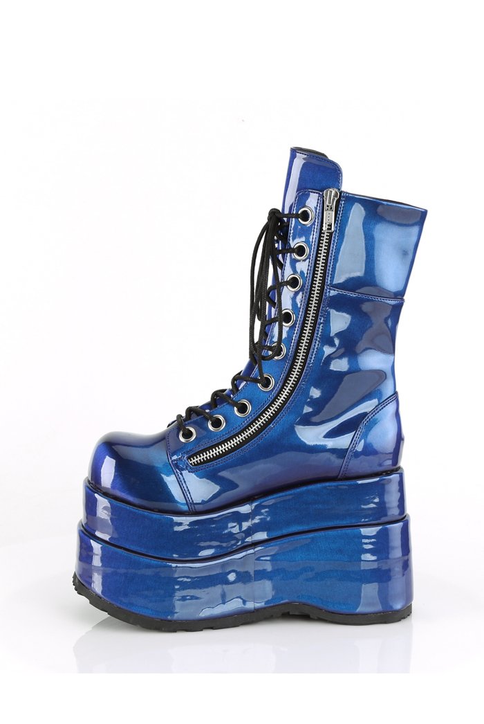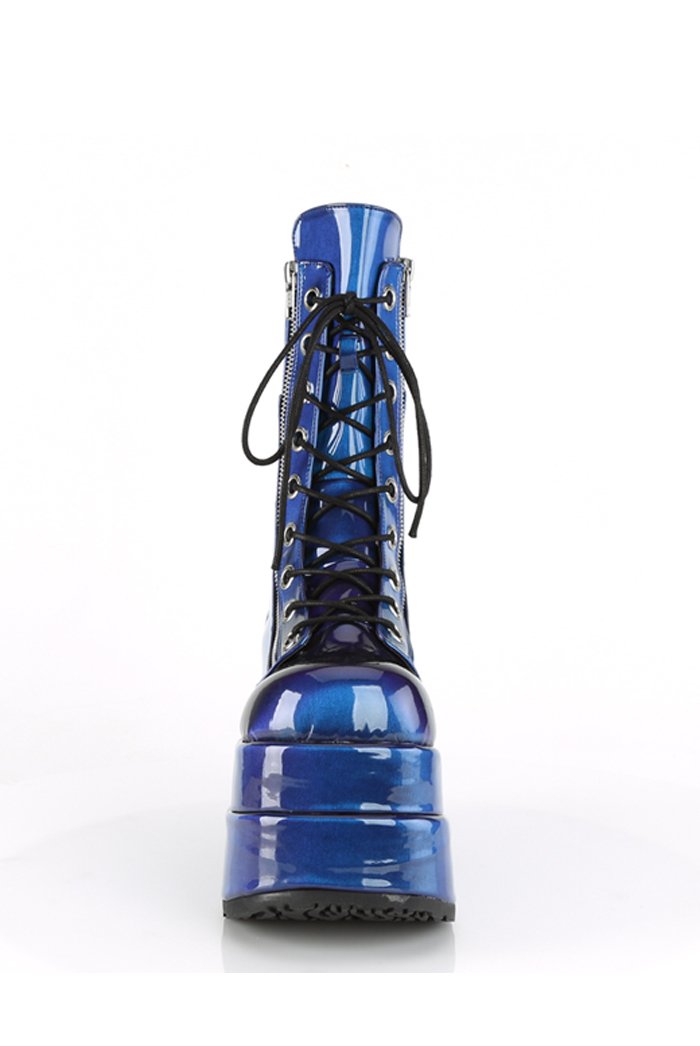 %text-1-start% Complete your outfit rocking Demonia's super sassy blue patent chunky lace up boots!