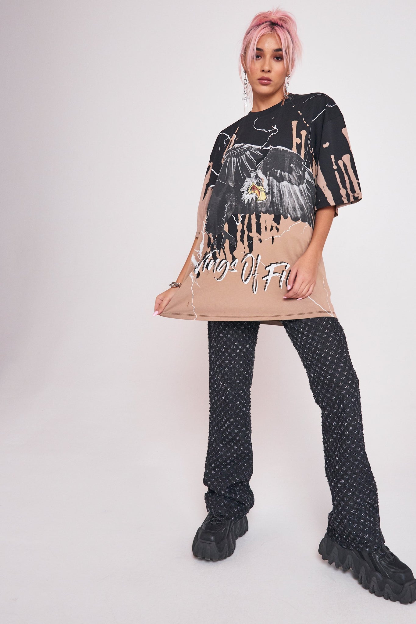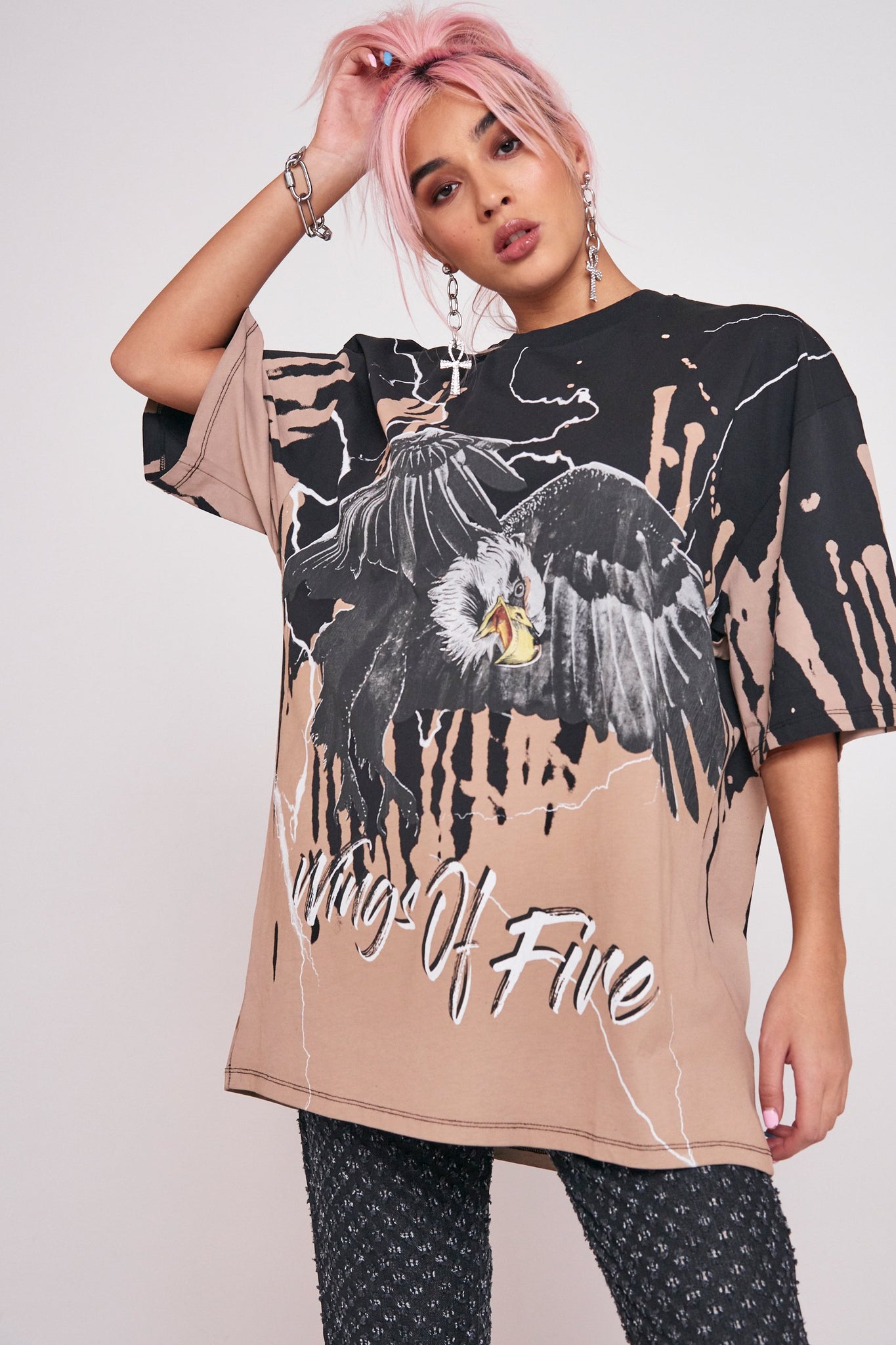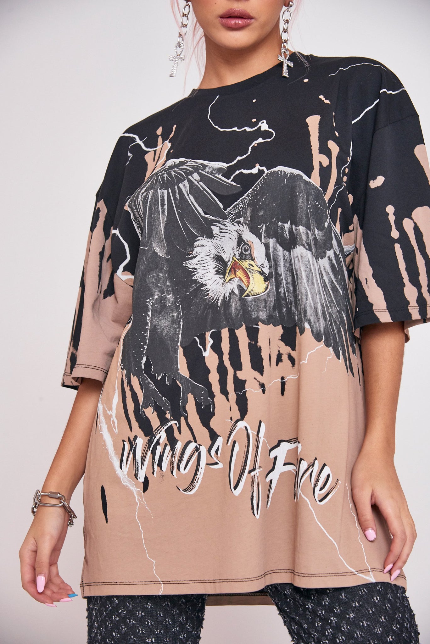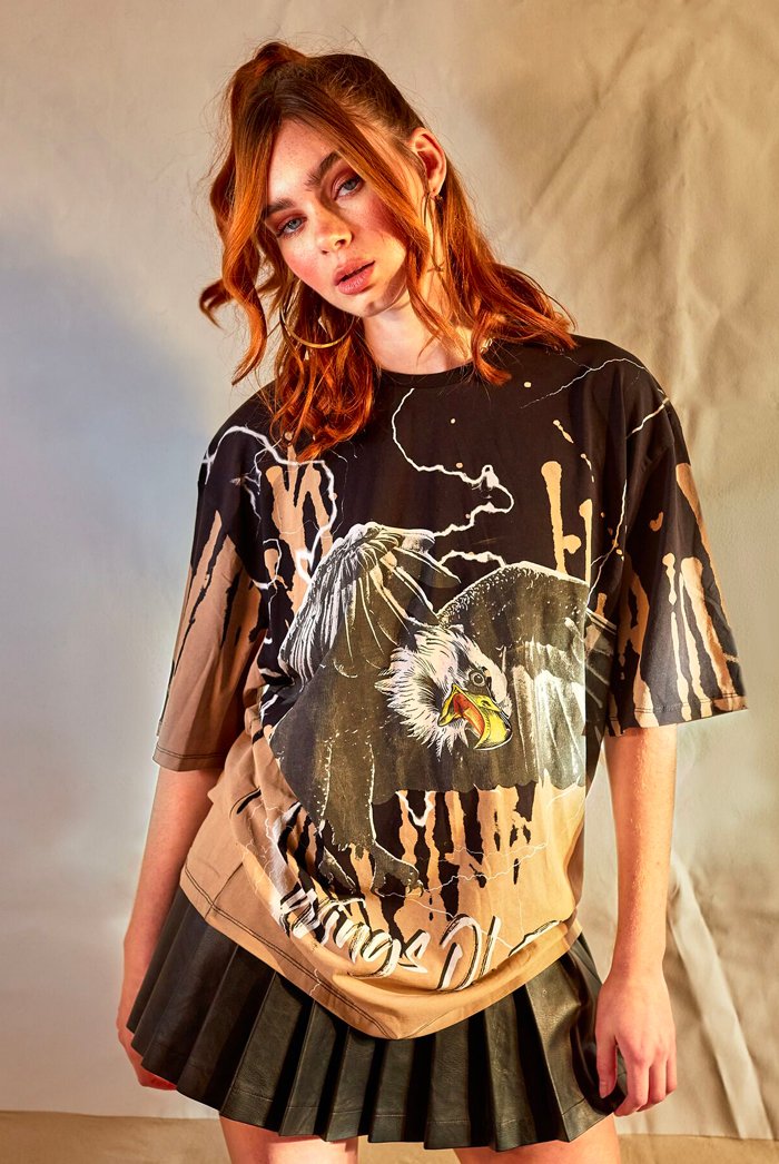 %text-1-start% Switch up your prints this season rocking our eagle print oversized rock t-shirt!%text-1-end%