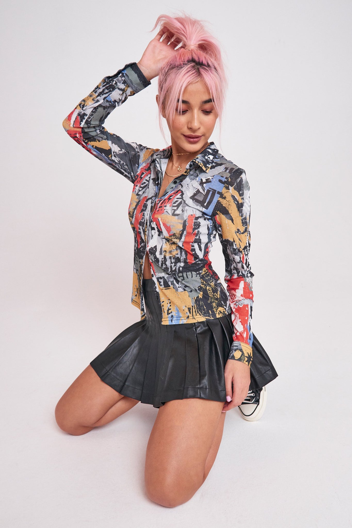 %text-1-start% The mini skirt of your dreams has arrived, upgrade your winter wardrobe rocking our Black Friday exclusive vegan leather pleated mini skirt!